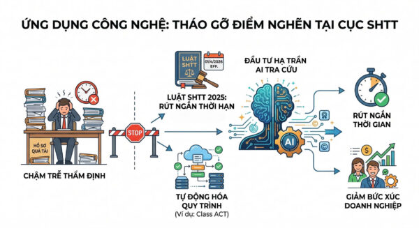 Trong bối cảnh lượng đơn nộp vào Cục SHTT liên tục tăng kỷ lục, việc dùng sức người để phân loại Bảng Nice hay tra cứu nhãn hiệu hình đối chứng là bất khả thi để đáp ứng thời hạn luật định mới. Do đó, việc ứng dụng các mô hình tương tự như “Class ACT” của Hoa Kỳ không còn là giải pháp “khuyến khích áp dụng”, mà là điều kiện tiên quyết về mặt quản trị hành chính.