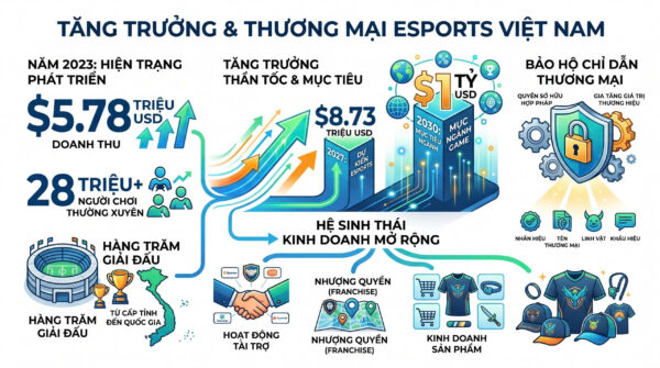 Sự chuyển dịch bứt phá này kéo theo các hoạt động tài trợ, nhượng quyền cũng như kinh doanh sản phẩm (trang phục thi đấu, phụ kiện, vật phẩm số) không ngừng mở rộng, khẳng định vị thế của Esports trên thị trường nội địa. Trước bối cảnh đó, việc bảo hộ các chỉ dẫn thương mại – bao gồm nhãn hiệu, tên thương mại, linh vật và khẩu hiệu – trở thành yếu tố then chốt để bảo vệ quyền sở hữu hợp pháp và gia tăng giá trị thương hiệu.