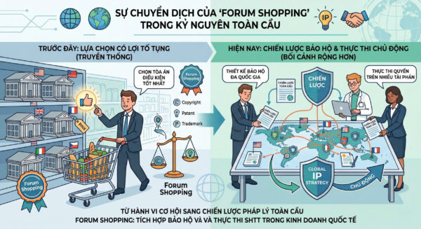 Trong lĩnh vực SHTT, nơi quyền mang tính lãnh thổ nhưng lại được khai thác trên quy mô toàn cầu, Forum Shopping không còn chỉ là vấn đề lựa chọn diễn đàn, mà đang dịch chuyển về bản chất – trở thành một yếu tố gắn liền với chiến lược quản trị và thiết kế phạm vi bảo hộ quyền.